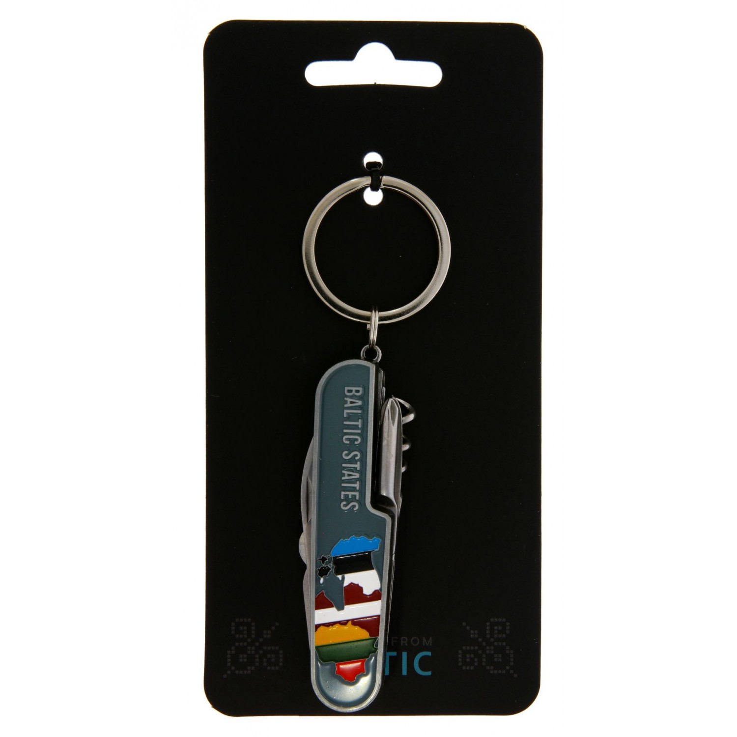 Kompakts kabatas nazis ar 7 funkcijām un atslēgu riņķi. Dekorēts ar Baltijas valstu – Lietuvas, Latvijas un Igaunijas – karogiem un uzrakstu Baltic States. Ērti pārnēsājams, praktisks ikdienas lietošanai un ceļojumiem.