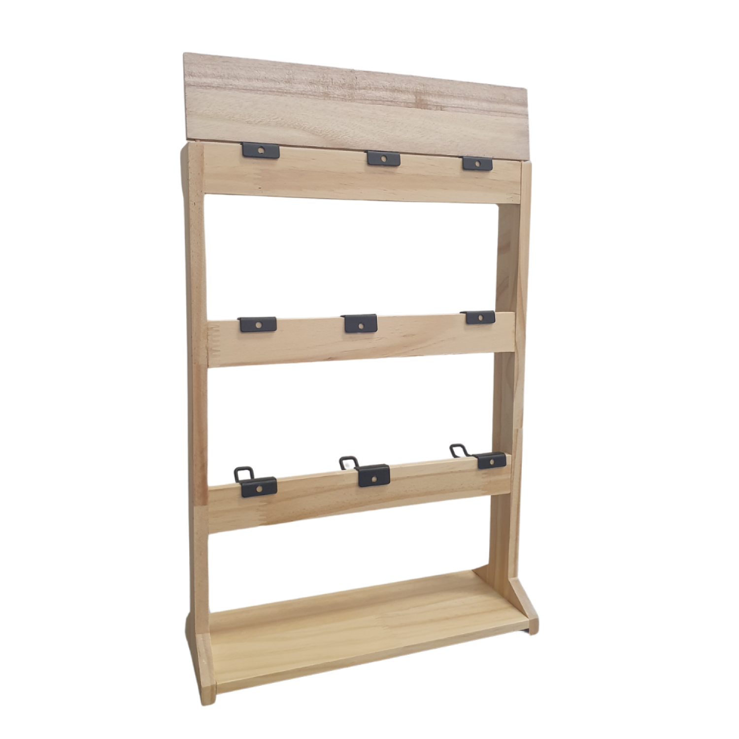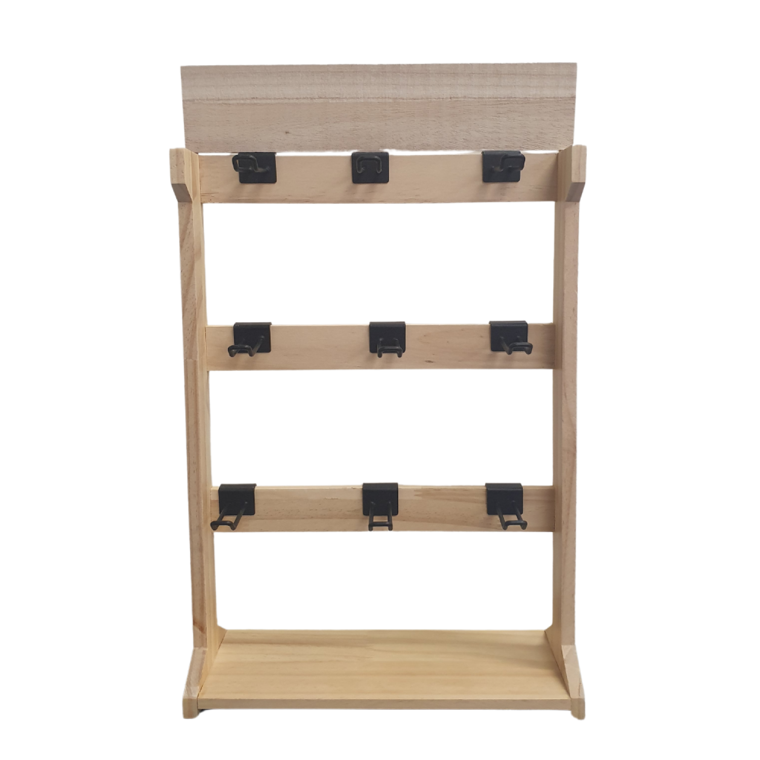 Koka statīvs, kas paredzēts rokassprādžu vai mazu priekšmetu izvietošanai. Aprīkots ar deviņiem ērti izvietotiem āķiem.