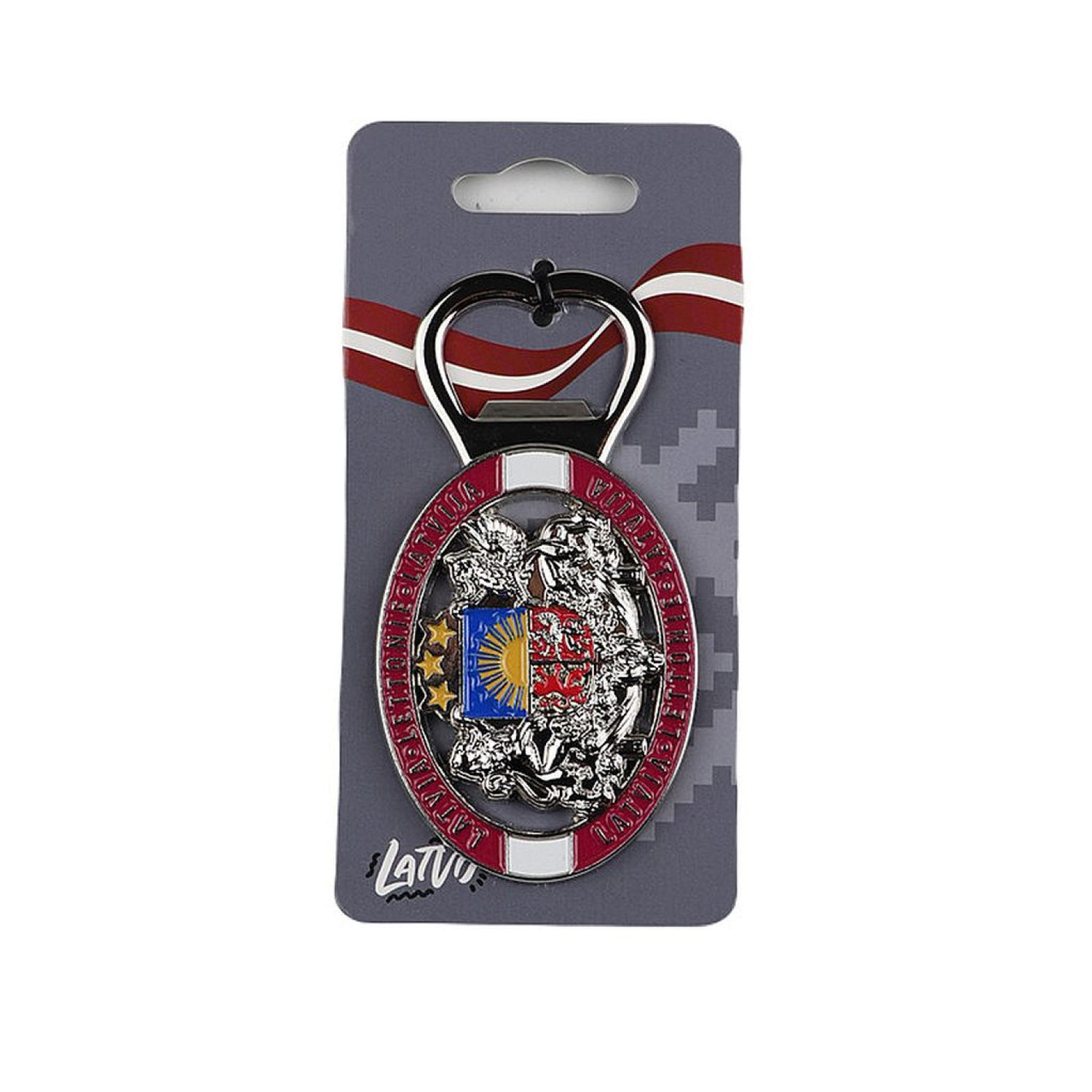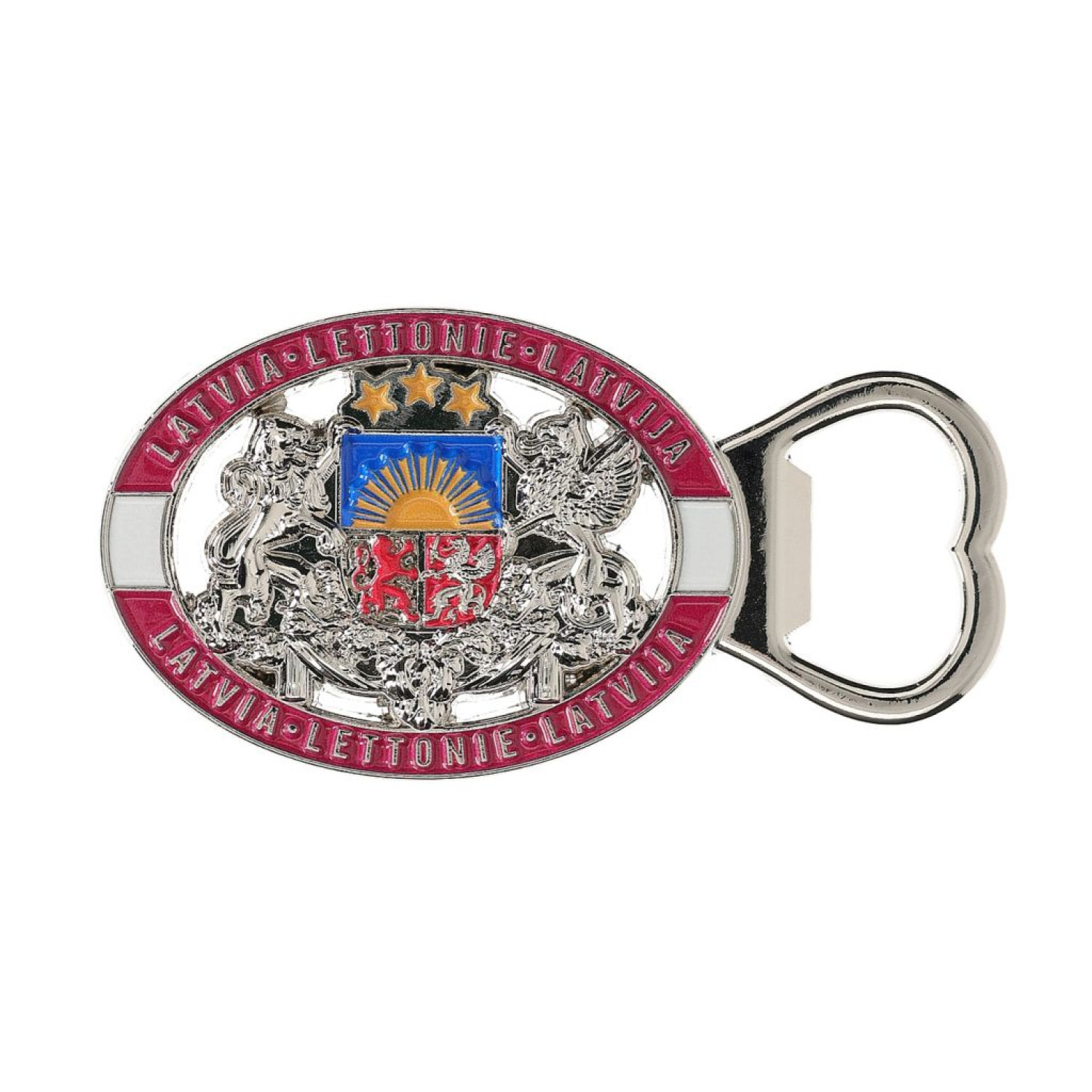 Augstas kvalitātes metāla ledusskapja magnēts ar pudeļu attaisāmo, dekorēts ar Latvijas valsts ģerboni. Šis funkcionālais un dekoratīvais suvenīrs izceļ Latvijas identitāti un ir ideāli piemērots mazumtirgotājiem, kuri specializējas ar Latviju saistītā tematiskā produkcijā.