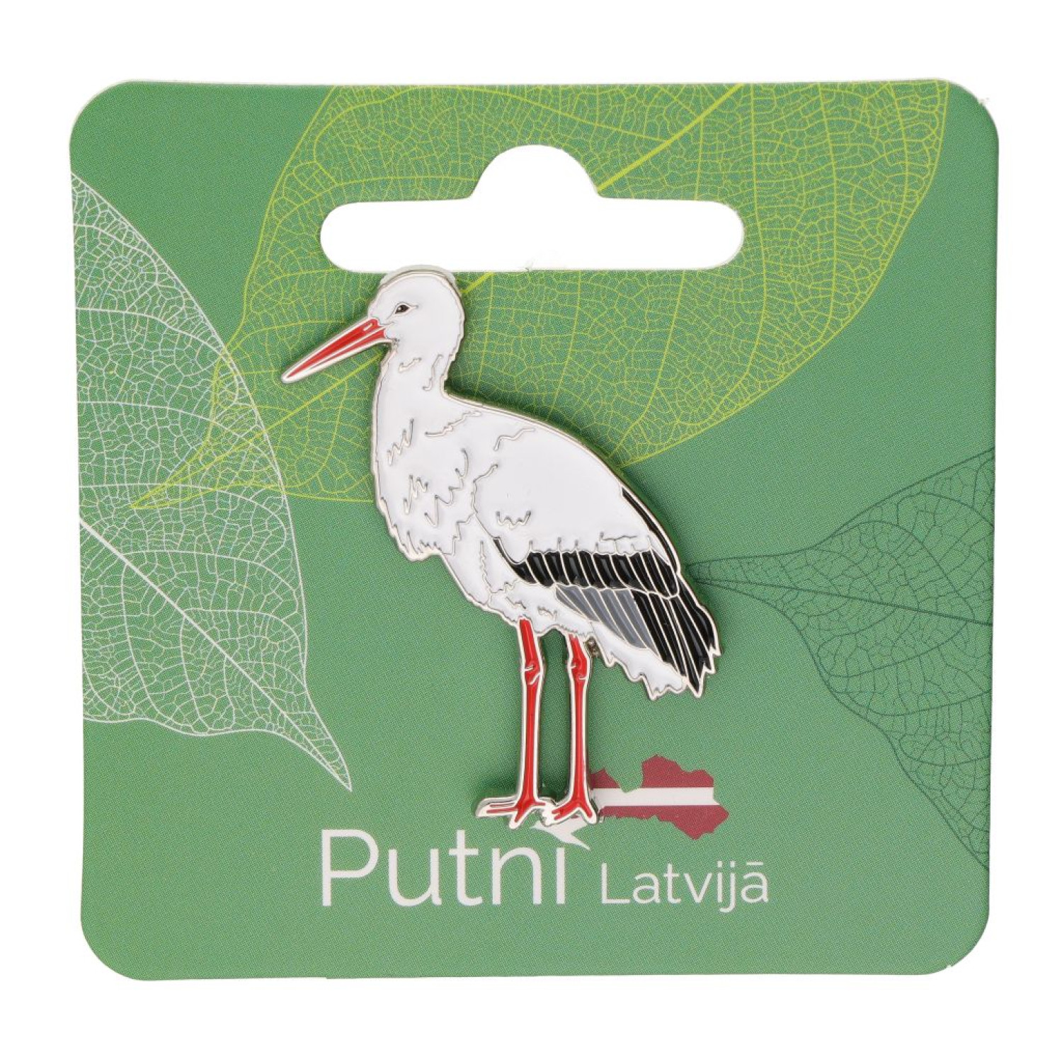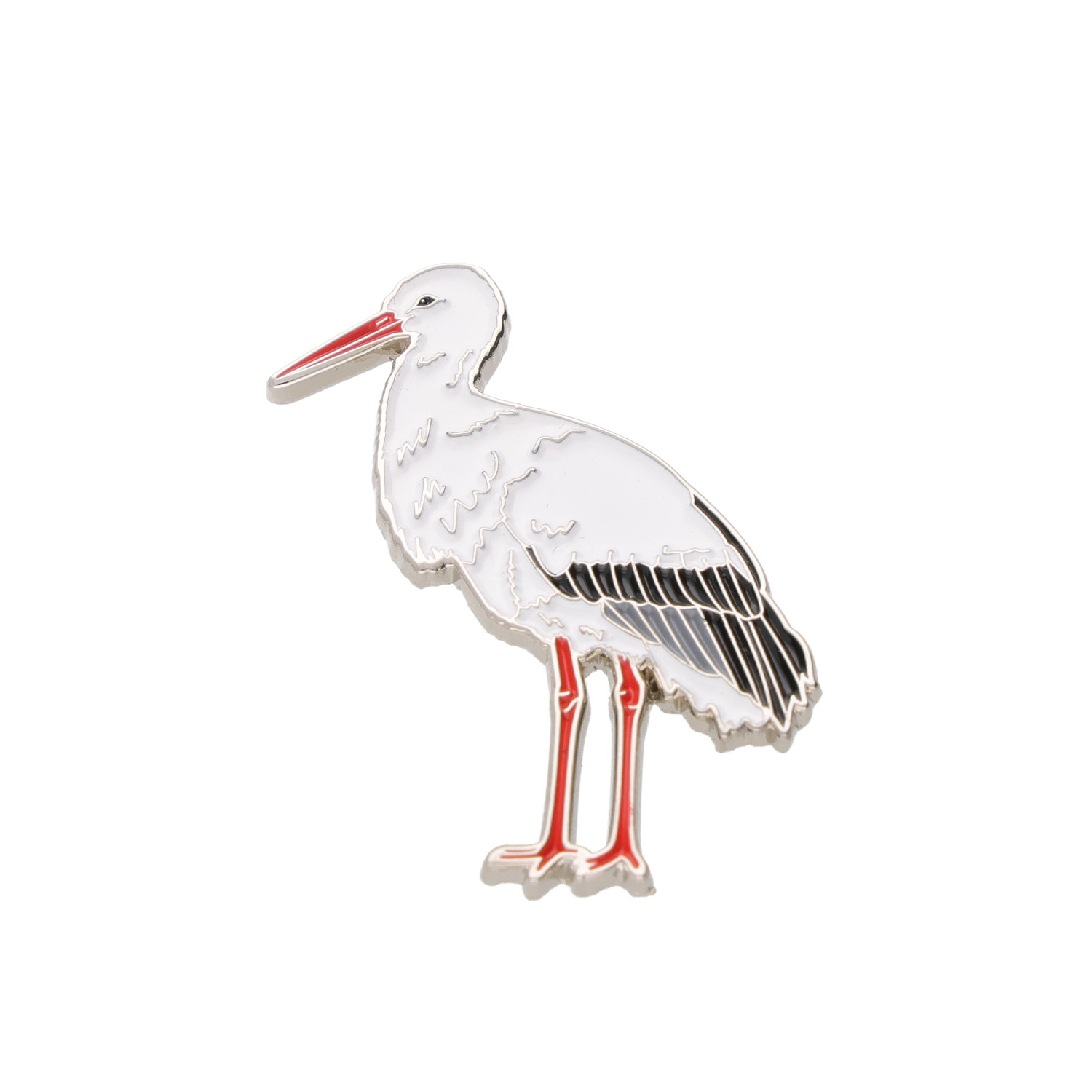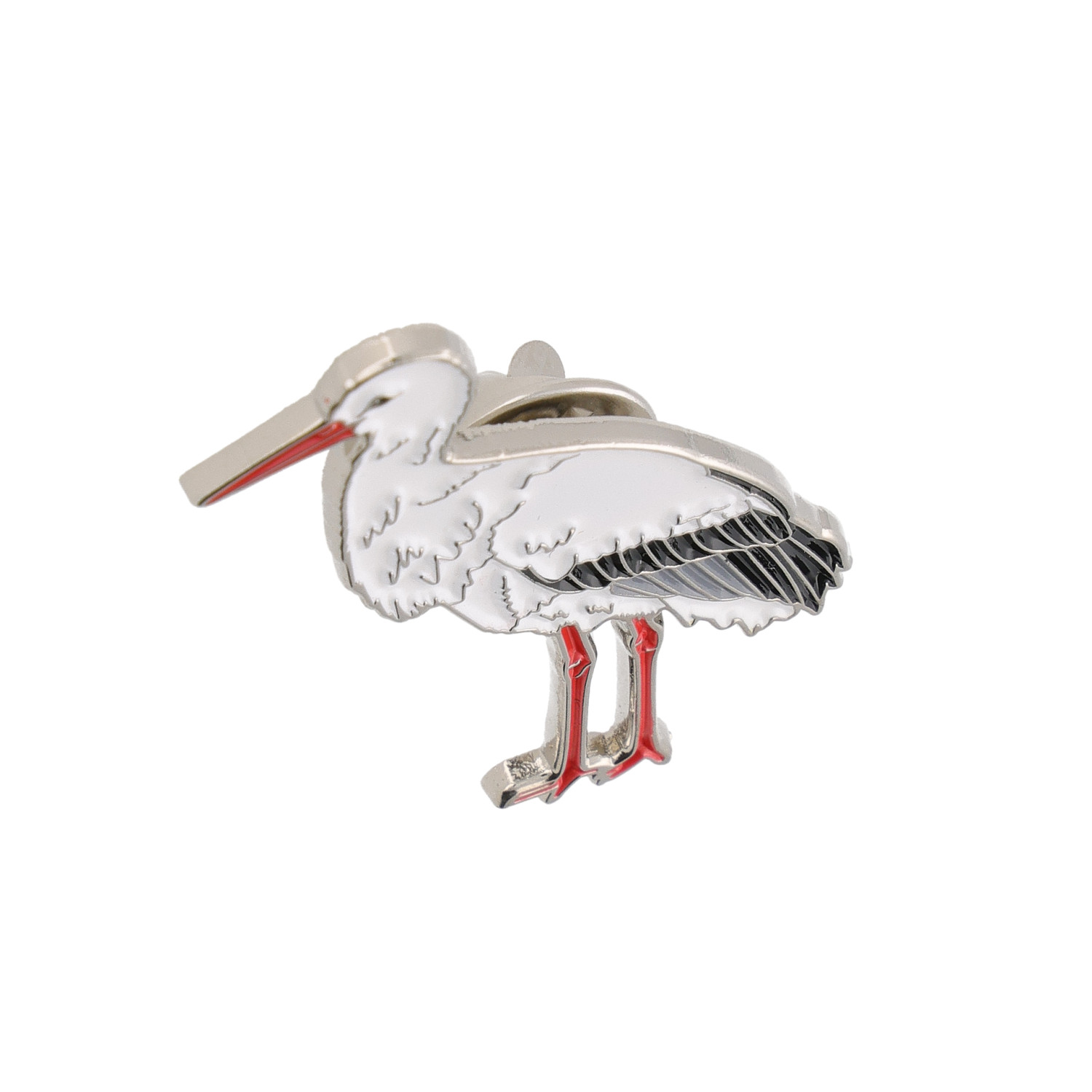 Metāla piespraude ar putnu Baltais stārķis (Ciconia ciconia).