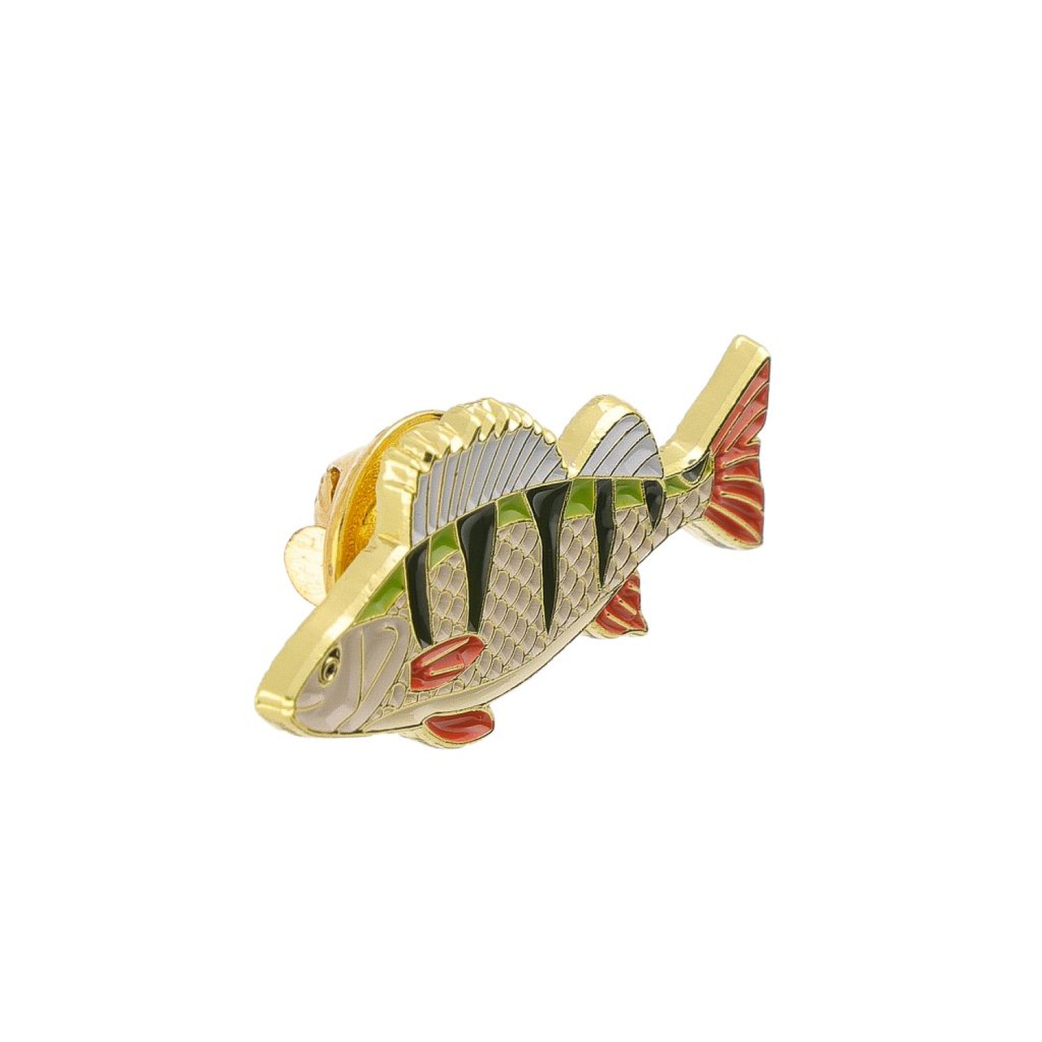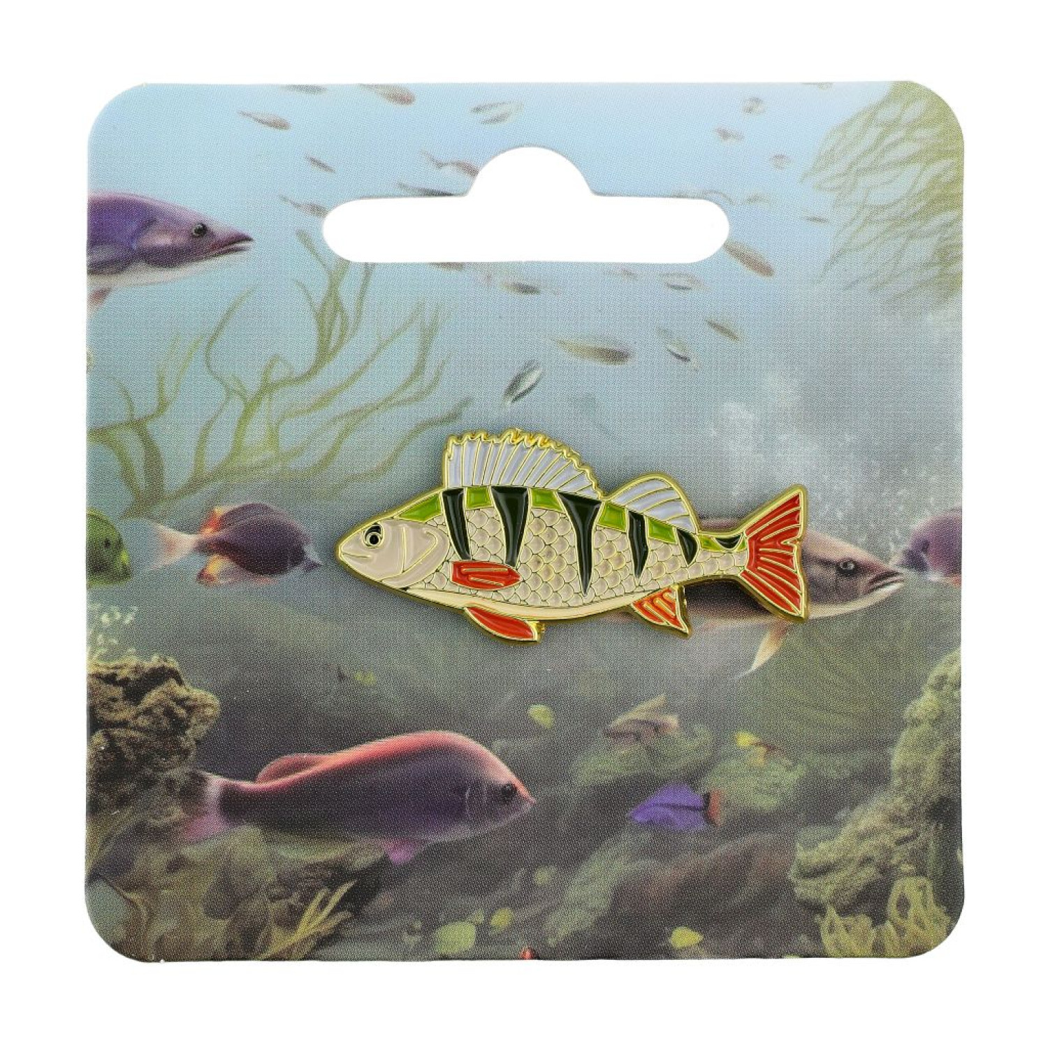 Metāla emaljas nozīmīte ar krāsainu ešera attēlu. Lielisks aksesuārs dabas un makšķerēšanas entuziastiem.