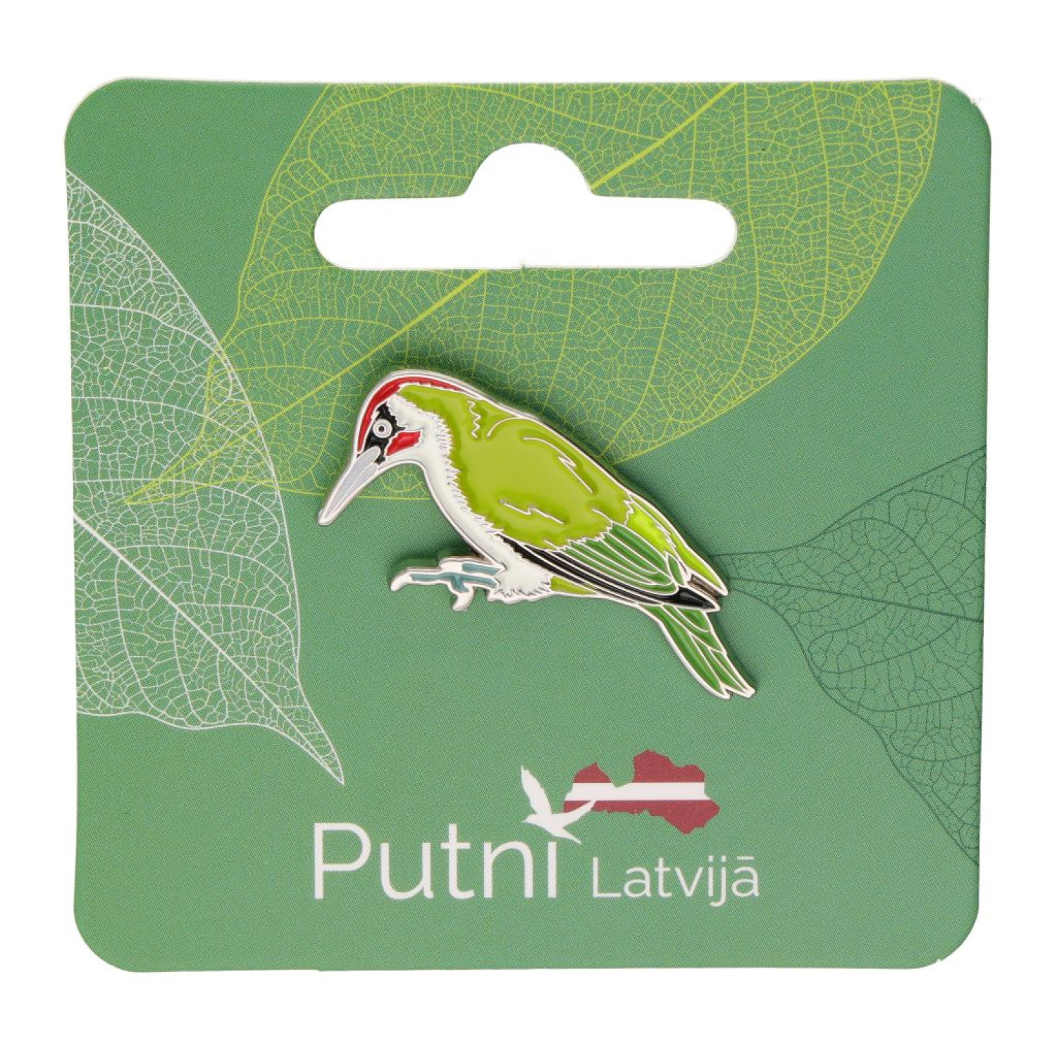Metāla piespraude ar putnu Zaļā dzilna (Picus viridis).