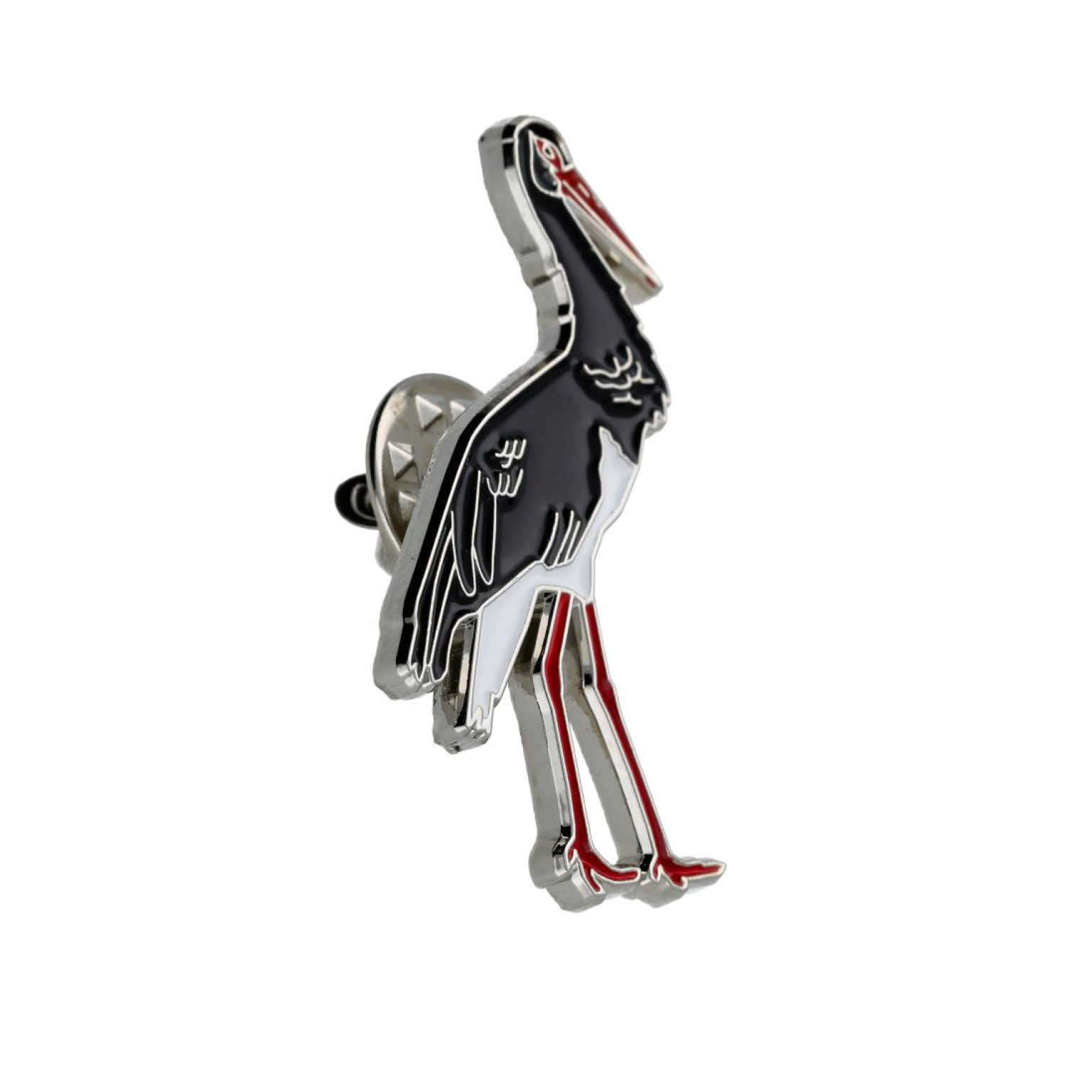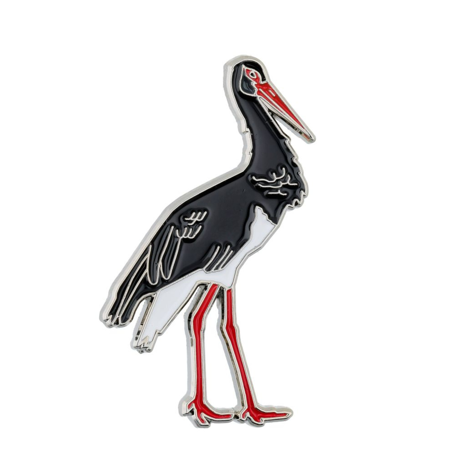 Emaljas metāla nozīmīte ar melno stārķi (Ciconia nigra).