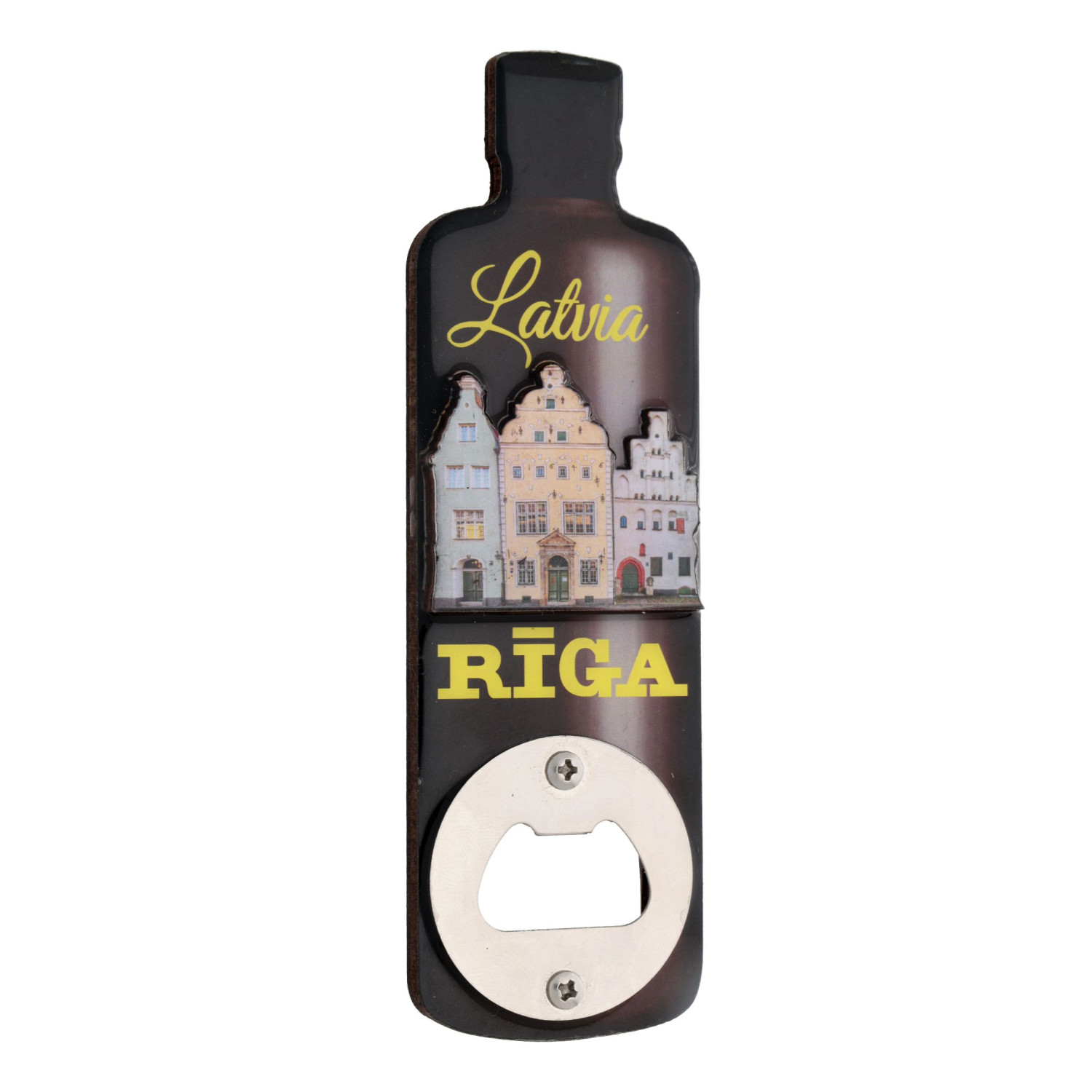 Pudeles formas ledusskapja magnēts ar attaisāmo Trīs brāļi Rīga