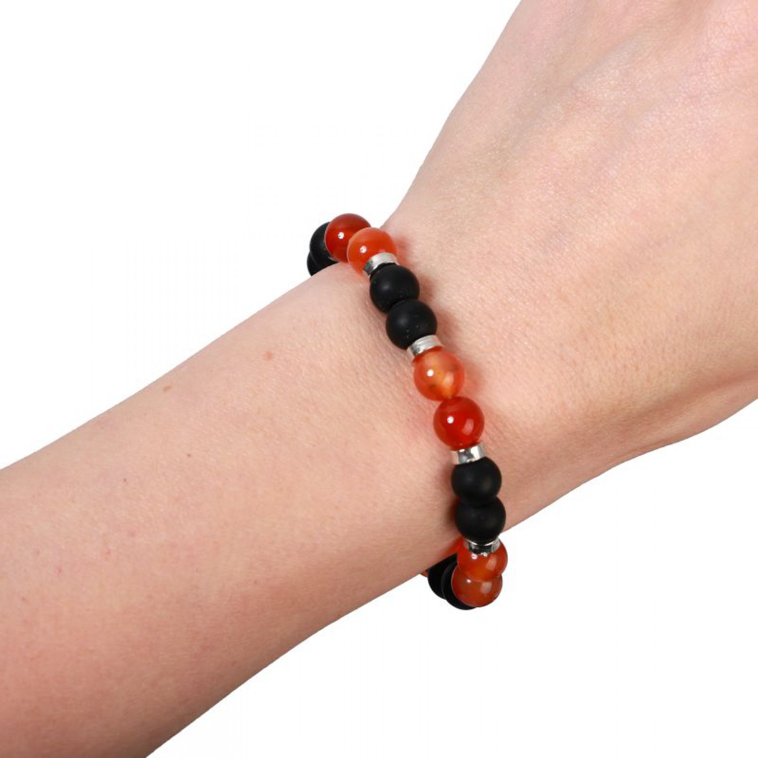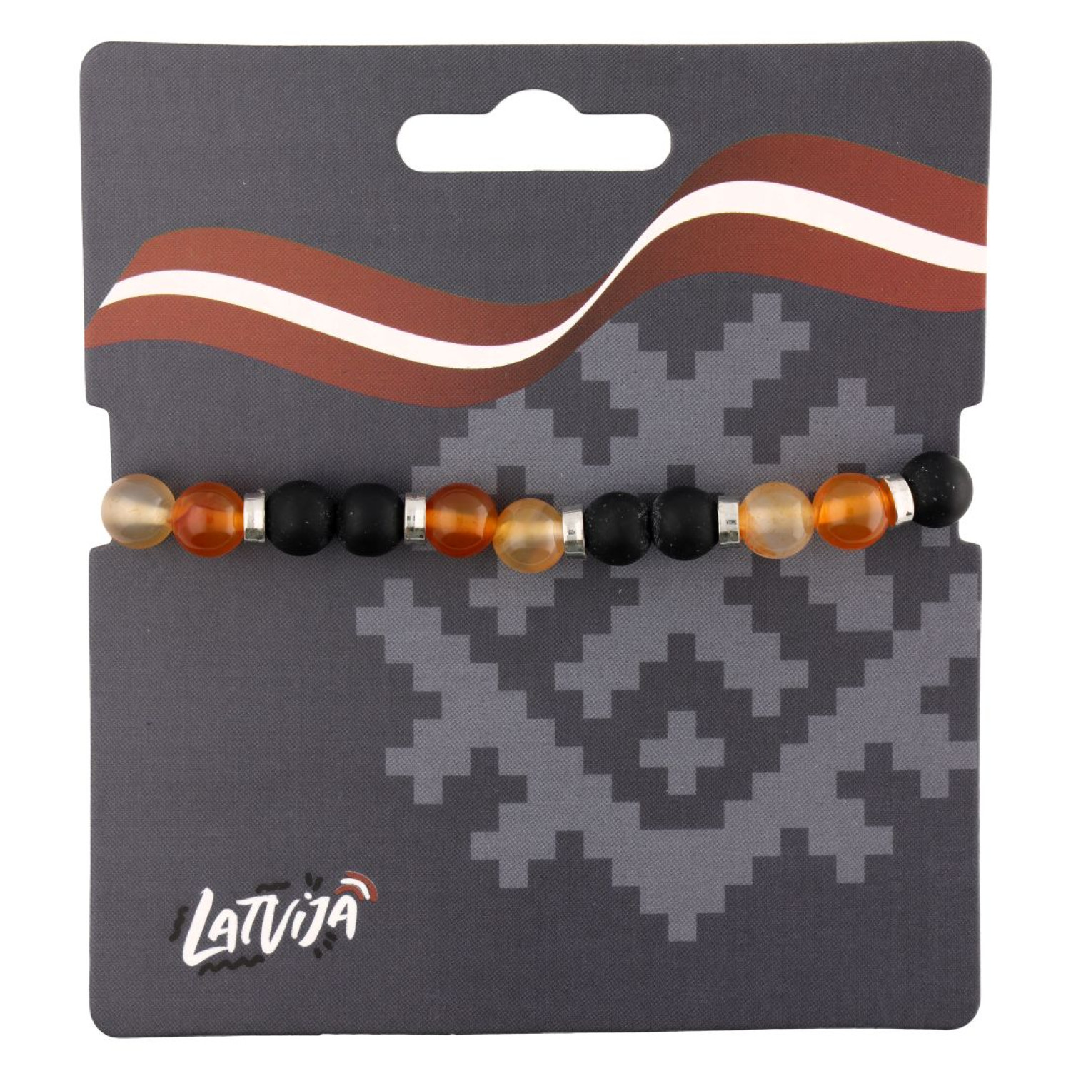 Rokassprādze ar melniem un dzintara krāsas krellītēm
