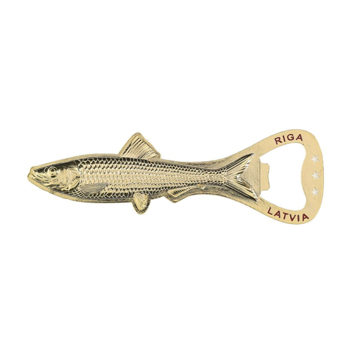 Stilīgs zivtiņas formas magnēts ar pudeļu attaisāmo. Rotāts ar gravējumu Rīga un Latvija, šis metāla suvenīrs ir gan dekoratīvs, gan praktisks — lieliski piemērots Latvijas tematiskajiem suvenīru tirgotājiem.